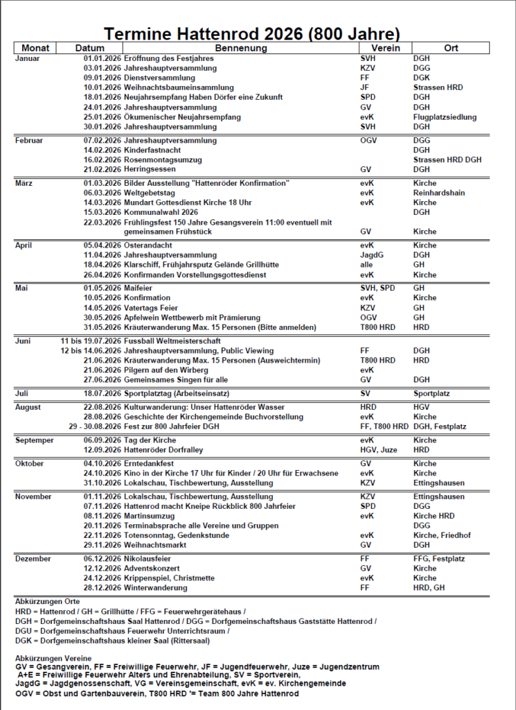 Veranstaltungskalender 2026 Alle Angaben ohne Gewähr. PDF download » Termine Hattenrod Stand 08.01.2026
